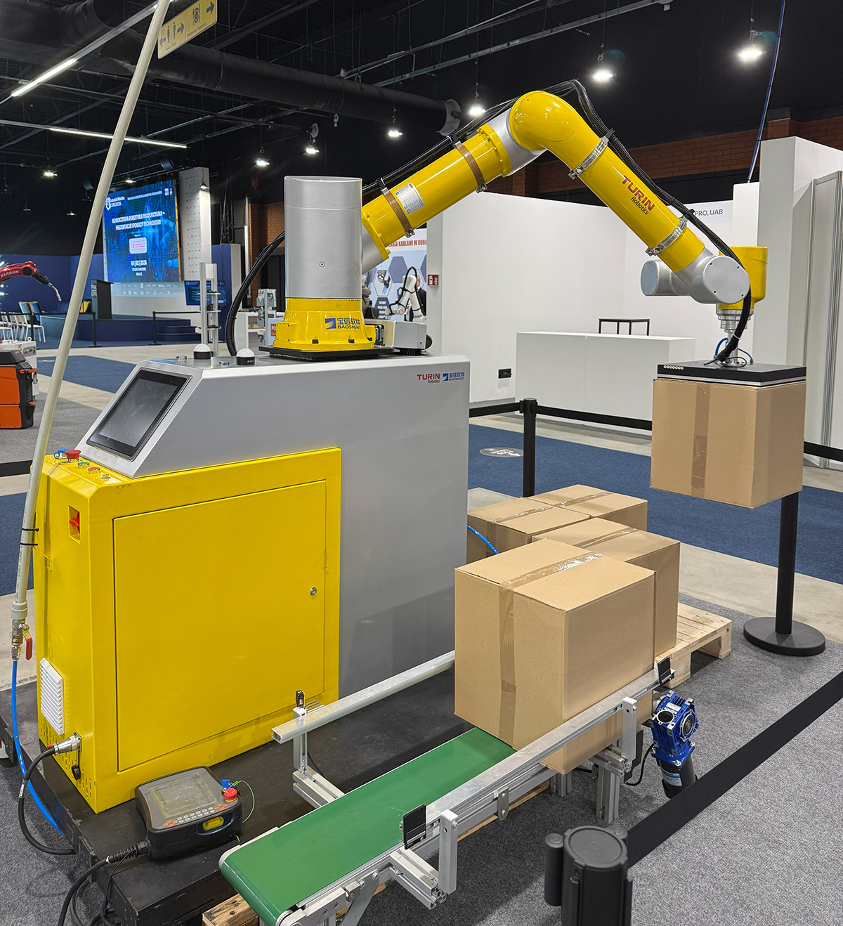 Na stoisku zaprezentowaliśmy dwie aplikacje: stację paletyzującą z zastosowaniem cobota TR30-1800C o udźwigu 30 kg oraz robota 6-osiowego TR01-370 pracującego w procesie lutowania.